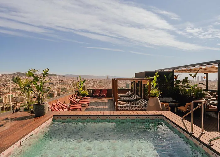 Nobu Hotel Barcelona is a 5-star hotel featuring an iconic menu by Chef Nobu Matsuhisa and a rooftop pool with panoramic views of the city. The hotel offers wellness services through Nobu Spa, private meeting rooms, and a lobby bar called Kozara. Located in the district of Sants-Montjuïc, it provides a vibrant Catalan atmosphere.