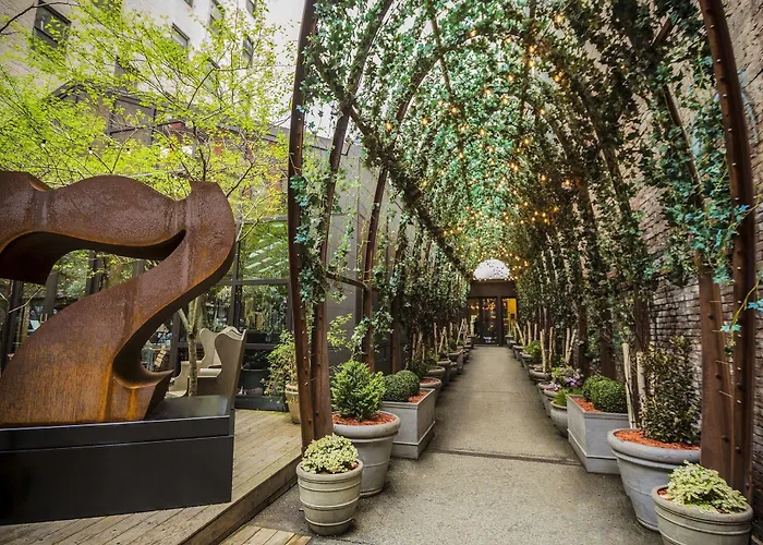 Dining at Nomo Soho is centered around NoMo Kitchen, known for its rustic American fare and daily farm-to-fork options. Guests can enjoy the Rose Garden, an outdoor patio for casual meetings and meals. The on-site SIP HAPPENS offers grab-and-go options for coffee and snacks.