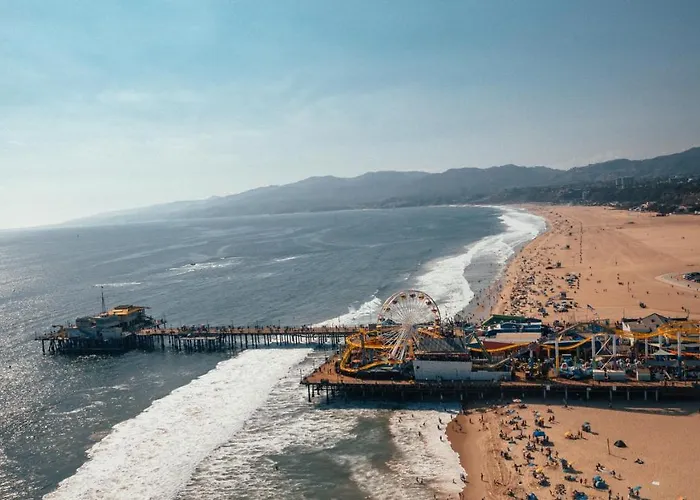 Ocean Lodge Santa Monica Beach Hotel features 3-star accommodations with a Booking.com rating of 7.8/10. This Santa Monica hotel showcases 1950s-style architecture and newly remodeled Beach Chic styled rooms, providing free WiFi and a children's playground.