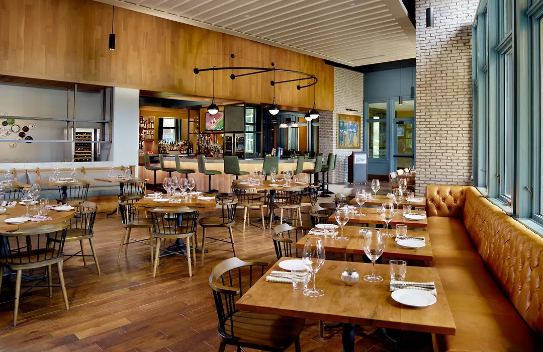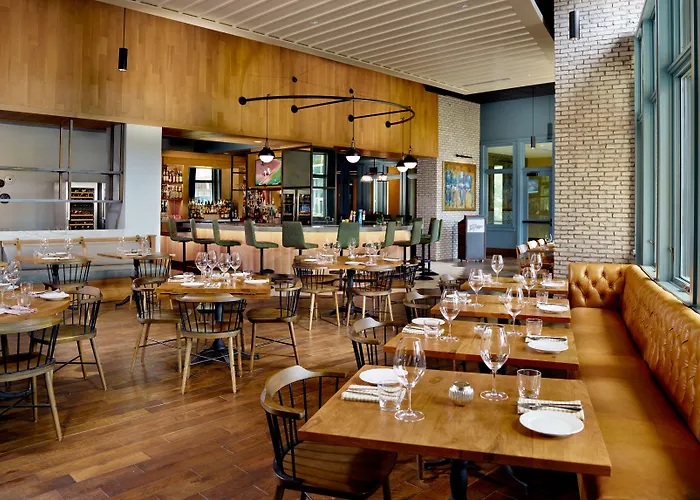 Dining options include National Anthem, the hotel's casual restaurant, and 582 Waterside Lounge & Bar, which offers classic American fare. Guests can enjoy cocktails created by a team of mixology experts and a pop-up cocktail lounge during the baseball season.