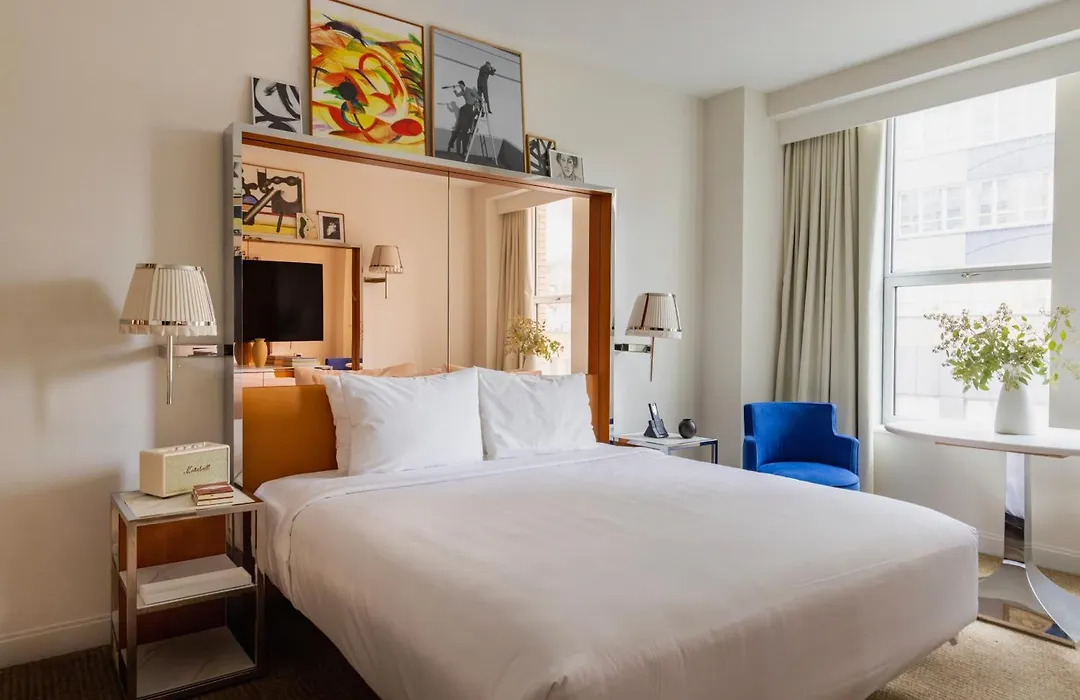 Leisure amenities include a reimagined gym featuring an exclusive AI-powered strength system with 100 lbs of digital resistance. The hotel also offers custom Priority bicycles for exploring the NoMad neighborhood and easy access to nearby cultural landmarks like the Museum of Modern Art and Central Park.