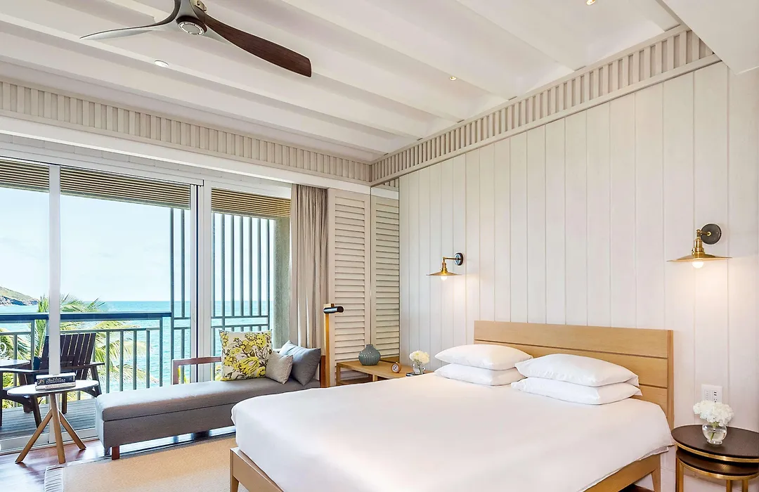 Each of the 126 rooms offers contemporary design with views of Banana Bay or the Straits of Nevis. Room amenities include air conditioning, flat-screen TVs, and spa-inspired bathrooms. The Three Bedroom Presidential Villa features a private sundeck and rooftop infinity pool.