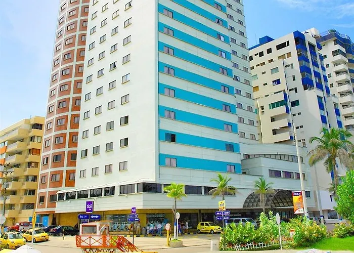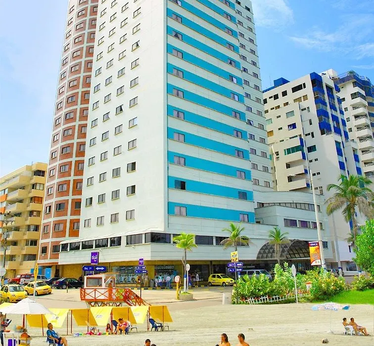 Hotel Cartagena Plaza, a 4-star hotel rated 8.0/10 on Booking.com, features modern accommodations with direct beach access in the upscale Bocagrande area. Amenities include a panoramic pool on the 18th floor, multiple dining options, and facilities for various events.