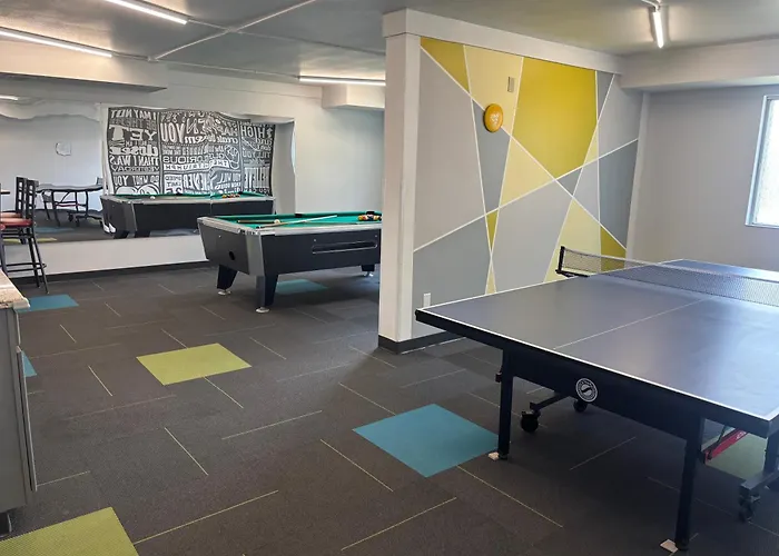 Hotel Pommier Indianola features a fitness center open 24/7, alongside a competition-grade ping pong table. Guests can relax on the outdoor patio, complete with cornhole facilities, ideal for socializing.