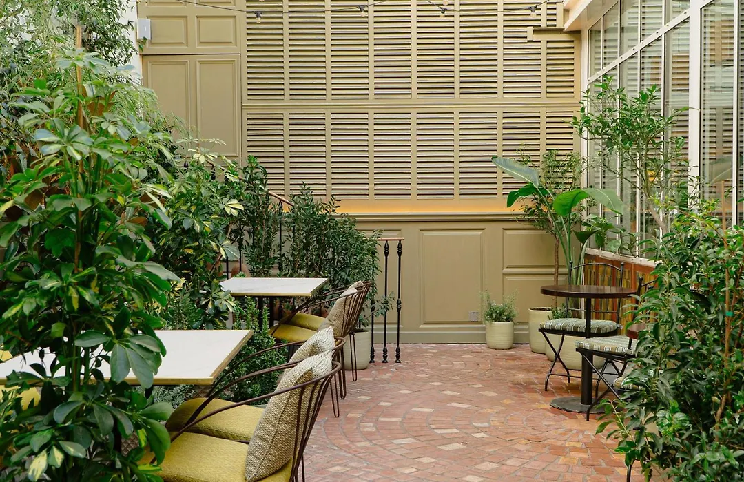 Dining options feature a Parisian breakfast buffet serving croissants and homemade granola, along with an exclusive cocktail menu at the bar. Guests can enjoy meals in Le Patio, providing a welcoming atmosphere and a spot to unwind.