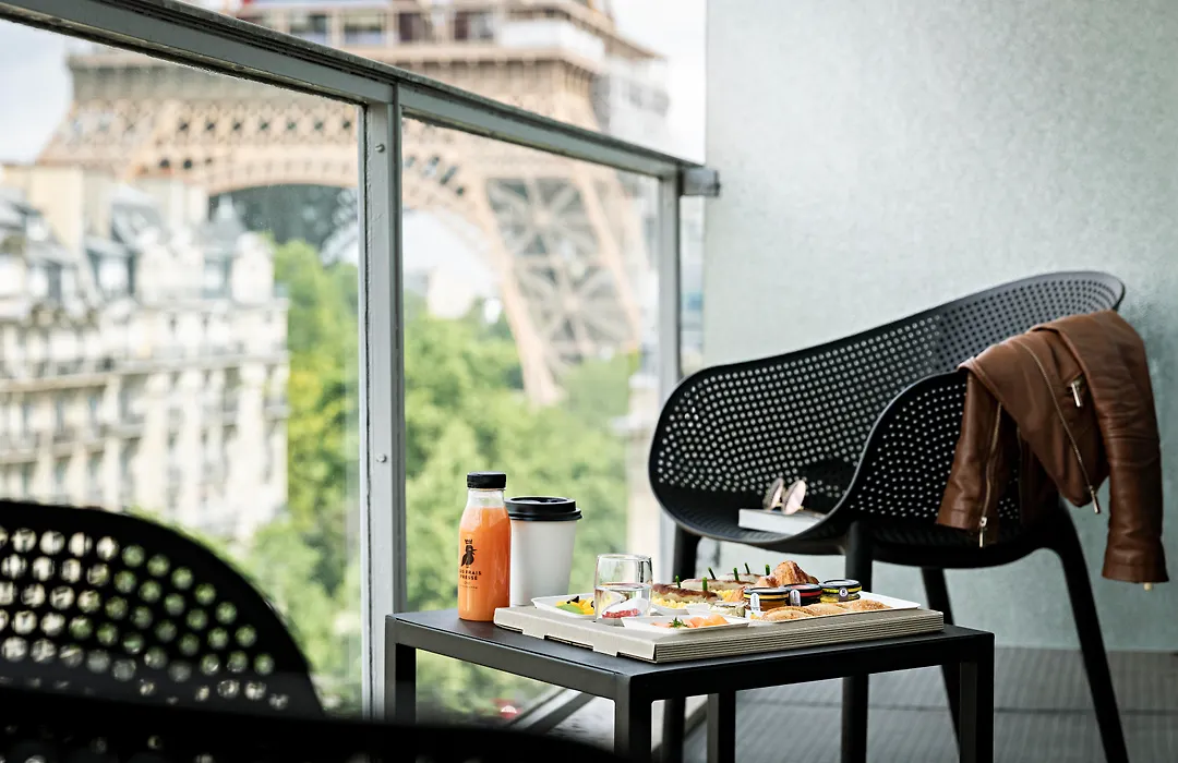 The Pullman Paris Tour Eiffel features spacious rooms with flat-screen TVs, free fiber-optic Wi-Fi, and marble en suite bathrooms. Many rooms offer partial views of the Eiffel Tower, with select options including balconies for enhanced viewing.