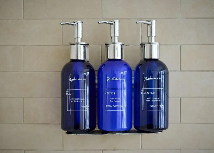 Radisson Blu Toronto Downtown offers a waterfront location with a rooftop patio featuring a seasonal pool and on-site dining options. This 4-star Toronto hotel has a rating of 8.3/10 on Booking.com and provides amenities such as free Wi-Fi and a fitness center.