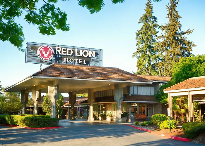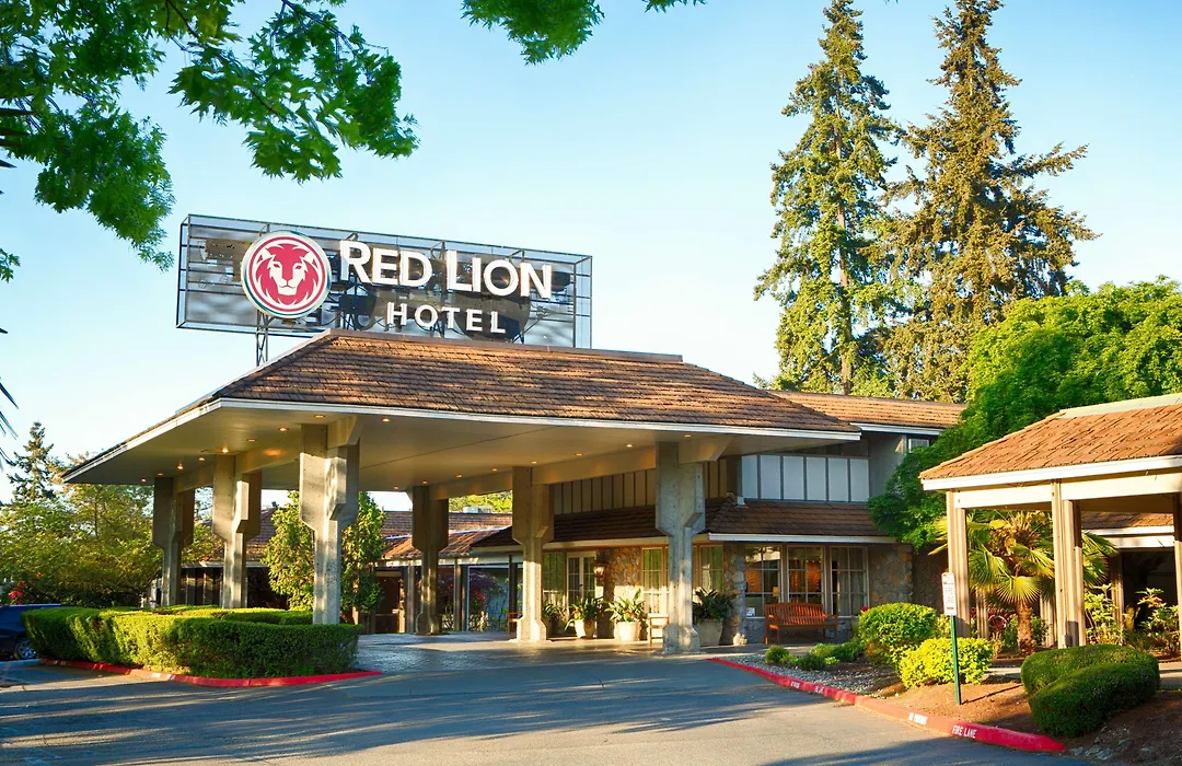 Red Lion Hotel Bellevue is a 3-star family-friendly hotel featuring a seasonal outdoor pool, a fitness center, and free Wi-Fi. The property provides modern accommodations, a complimentary to-go breakfast, and a welcoming lobby with a fireplace.