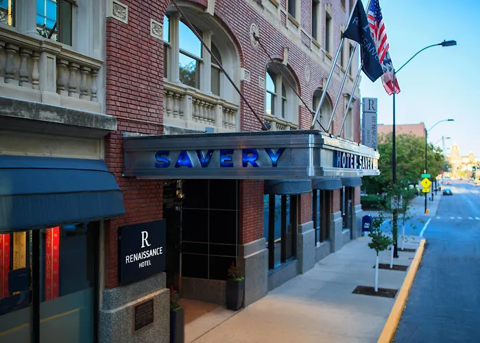Renaissance Des Moines Savery Hotel features a historic downtown location, with close proximity to the Iowa Events Center and Wells Fargo Arena. This 3-star hotel offers amenities including a fitness center, restaurant, and a bar.