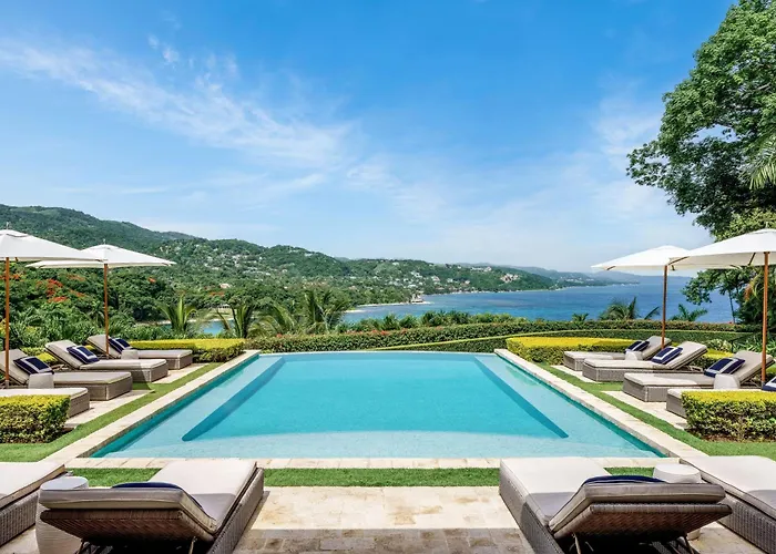 Round Hill Hotel & Villas is a luxurious 5-star Montego Bay hotel renowned for its award-winning villas and exquisite dining options. The property features a private beach, multiple pools, and a full-service spa, ensuring a distinguished level of service and comfort for its guests.