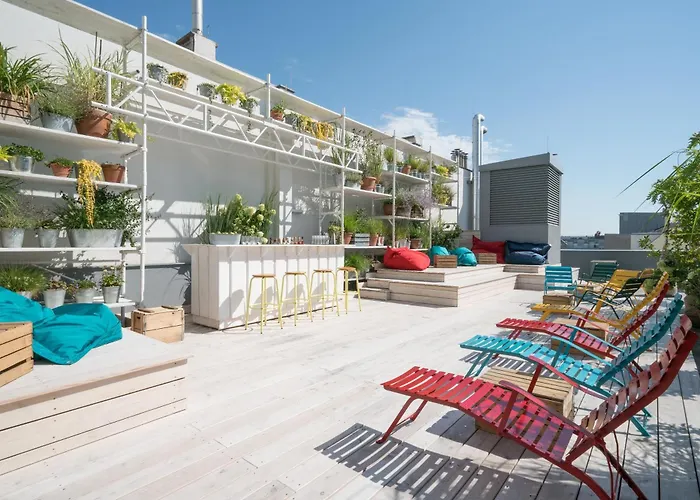 Ruby Marie Hotel Vienna, a 4-star hotel with a rating of 8.5/10 on Booking.com, features modern design elements and vibrant common areas. The hotel is part of a small chain of design hotels and offers a mix of conveniences such as a rooftop terrace and a lounge bar. It is situated in the lively Neubau district, known for its creative scene and hip eateries.