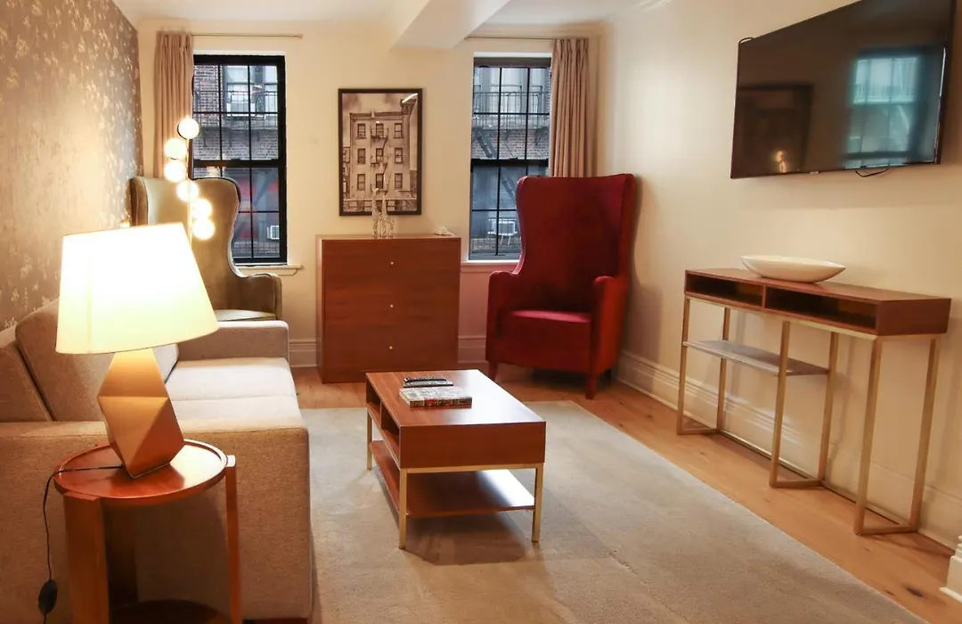 A 24-hour front desk is available for guest assistance at Hotel Scherman. In terms of transportation, the closest subway station is a 9-minute walk away, with various bus stops within a few minutes' reach. Nearby landmarks include Times Square and the Museum of Modern Art, both within a 1-kilometer radius.
