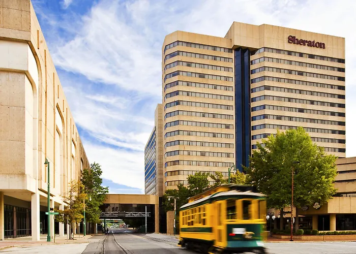 Sheraton Memphis Downtown Hotel offers modern accommodations with a 4-star rating and is directly connected to Renasant Convention Center. Guests can enjoy amenities such as an indoor heated pool, fitness center, and on-site dining at Crossroads Tavern and Grille.
