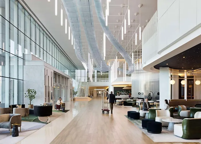 Signia By Hilton Atlanta Georgia World Congress Center, a 5-star hotel, features 976 rooms with modern technology and panoramic views of Atlanta. This property includes a rooftop pool, wellness center, and diverse dining options across eight venues. Located in Downtown Atlanta, it is close to notable attractions such as Mercedes-Benz Stadium and State Farm Arena.