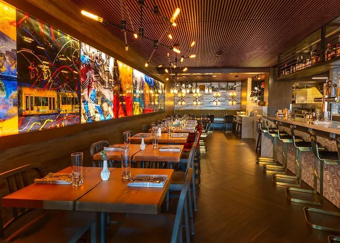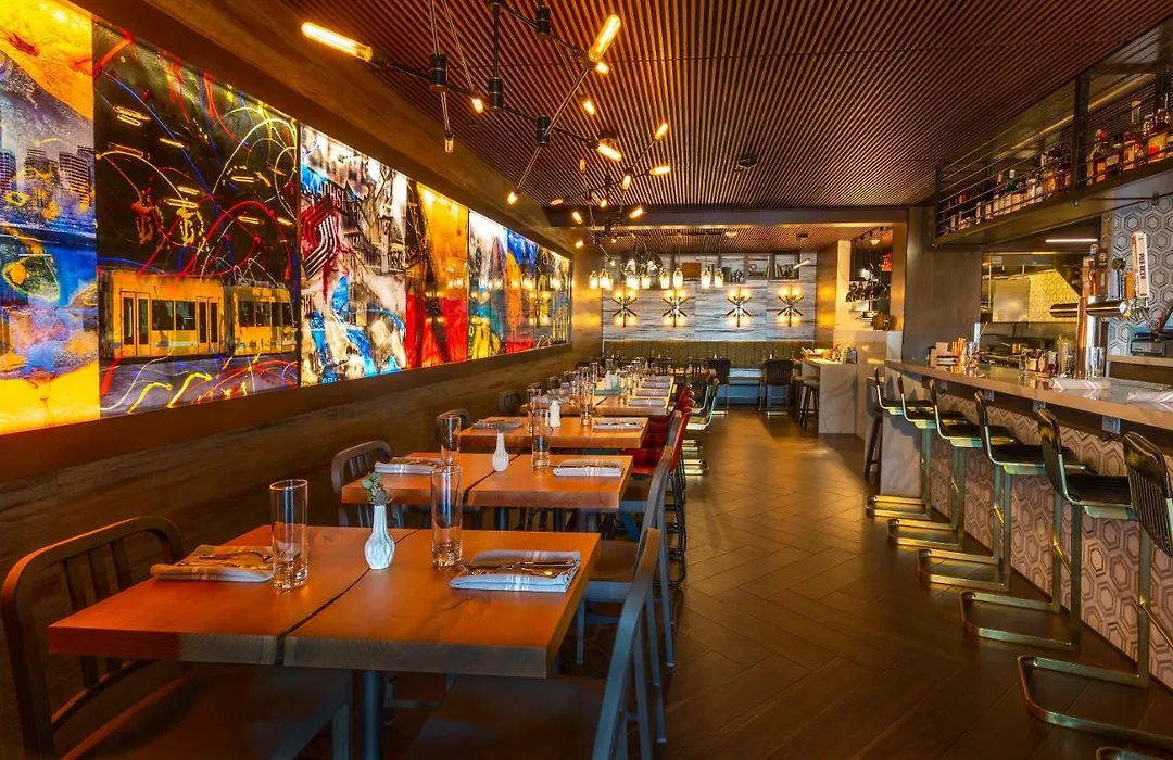 Dining options include the onsite Urban Steel Kitchen + Bar, serving breakfast, lunch, and dinner with ingredients sourced from the Pacific Northwest. Guests can enjoy various American cuisine offerings in a contemporary setting.