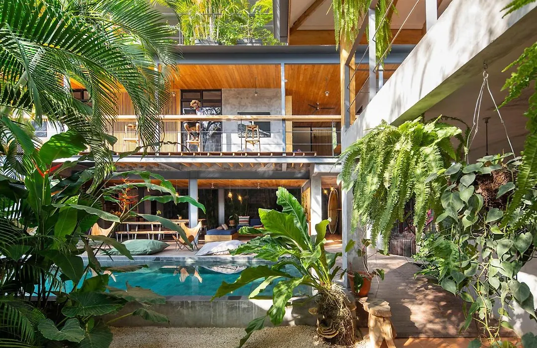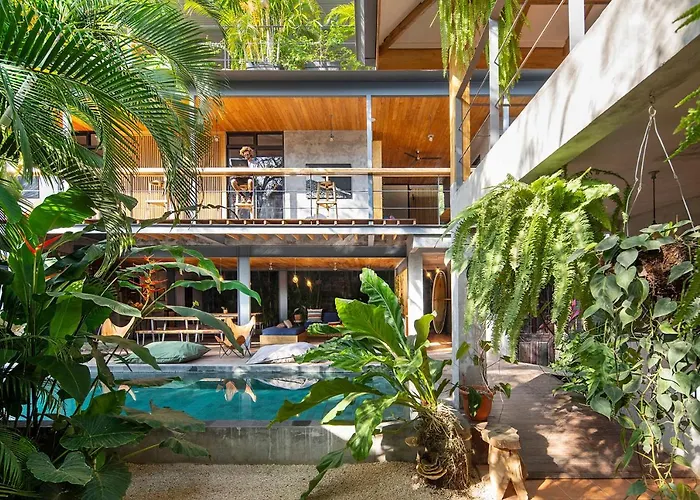 Somos, an 8.3/10 rated hotel, provides a contemporary surfing refuge with a focus on adventure in Playa Santa Teresa (Puntarenas). This 3-star hotel features private accommodations, shared quarters, an outdoor swimming pool, and a rolling diner serving fresh, local cuisine.
