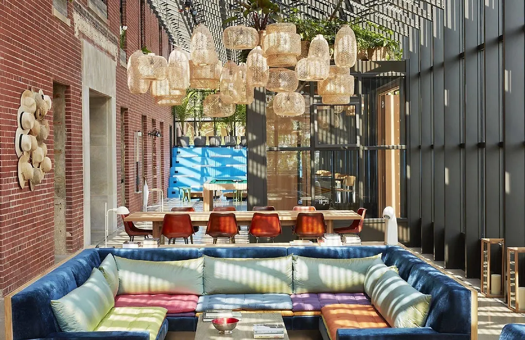 The Asbury features leisure facilities such as a heated outdoor pool, seasonal rooftop events, and a lively lobby bar offering live music and game nights. The hotel serves as a hub for cultural events, exhibitions, and casual hangouts.