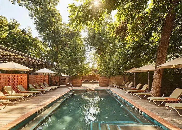 The Carpenter Hotel, rated 8.8/10, is a 3-star Austin hotel situated in South Austin, featuring a unique approach to Texas cuisine and a blend of historic and modern design. Amenities include an indoor and outdoor restaurant, a pool, and a café with locally-sourced coffee.