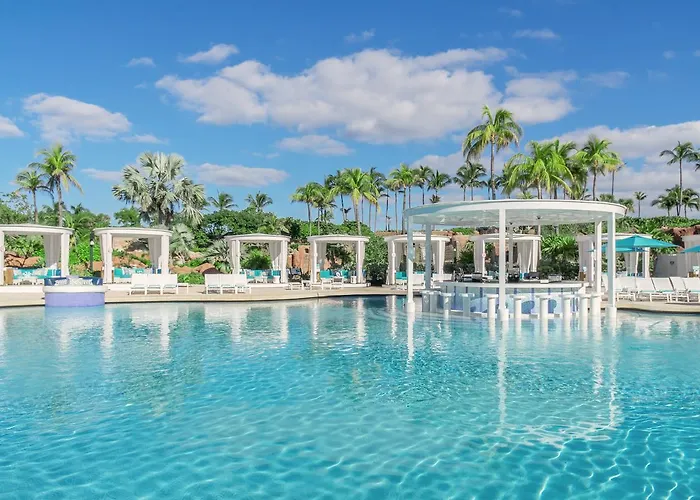 The Coral At Atlantis, a 4-star Nassau hotel with a 7.5/10 rating on Booking.com, features a 10000-square foot gym and direct access to a 141-acre water park. This family-friendly resort offers diverse dining options, a large casino, and an extensive marine habitat.