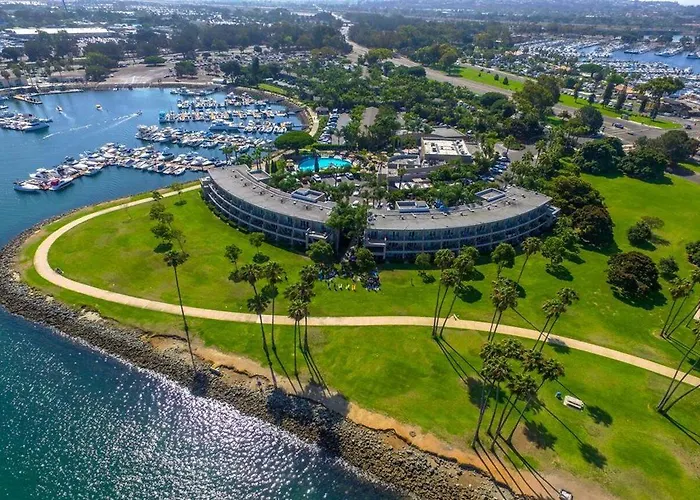 The Dana On Mission Bay, a 3-star San Diego hotel, features modern accommodations amid 10 acres of tropical landscaping. Amenities include two heated pools, a private marina, on-site dining at Firefly Eatery & Bar, and a variety of water sports. The property is dog-friendly, enhancing its appeal for pet owners.