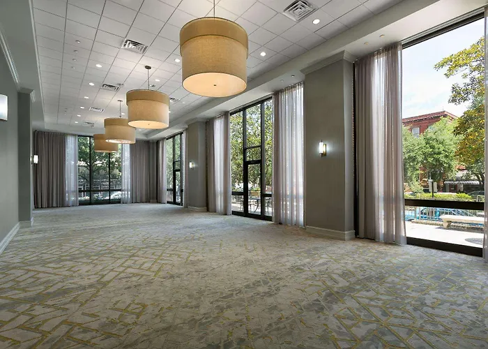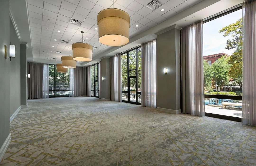 The DeSoto offers 20000 square feet of event space suitable for both corporate and social gatherings. A state-of-the-art fitness center and an outdoor rooftop pool allow for leisure activities, while the hotel's art gallery showcases the work of SCAD graduates, enhancing the cultural experience.