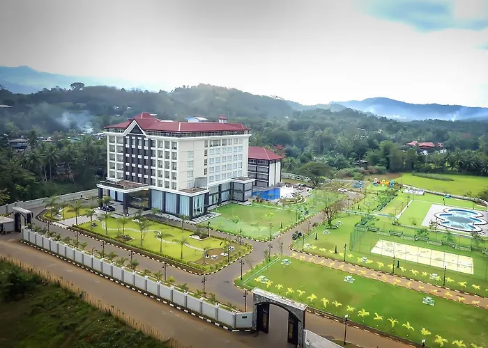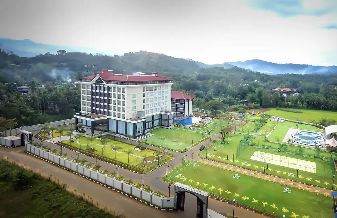 Guest rooms at The Grand Mountain Hotel include a range of options such as deluxe rooms, executive suites, family suites, and a presidential suite. All accommodations are equipped with modern amenities like air conditioning, flat-screen TVs, and mini-fridges, ensuring a comfortable stay.