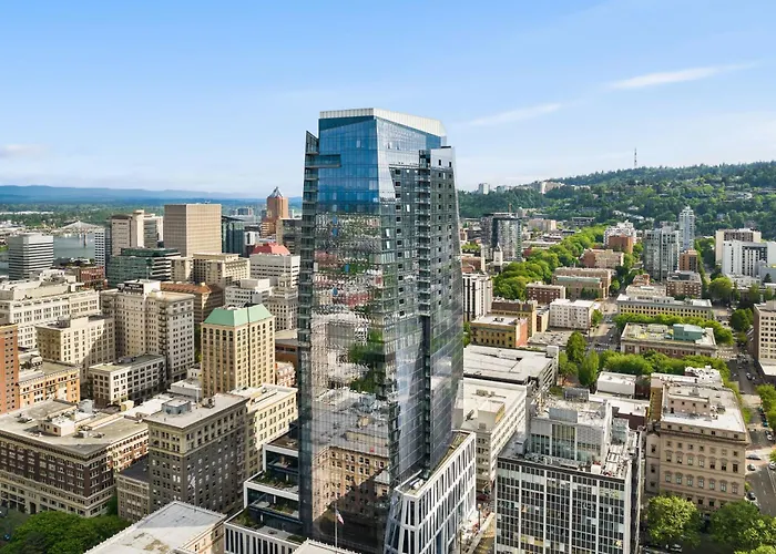 The Ritz-Carlton, Portland, a 5-star hotel rated 9.3/10 on Booking.com, features luxurious accommodations and panoramic city skyline views. It includes a rejuvenating spa, an infinity pool on the 19th floor, and two distinctive dining options that highlight local flavors and craftsmanship.