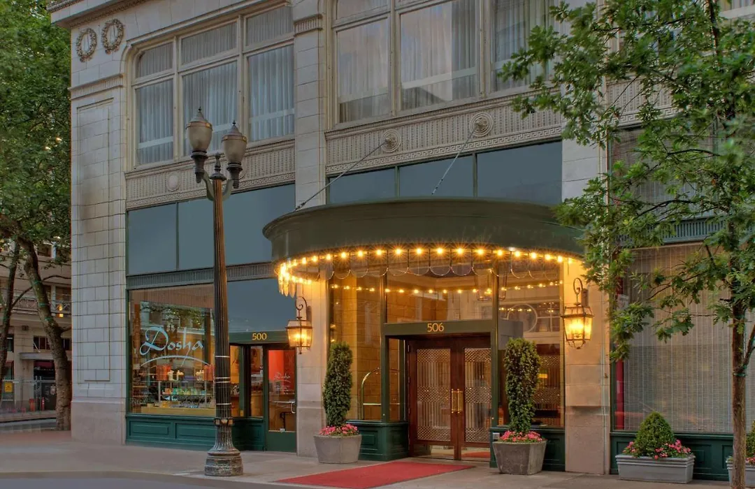 Leisure amenities include a 24-hour fitness center equipped with a Peloton Bike, a full-service spa offering massage services, and easy access to local attractions like Powell's City of Books and Pioneer Courthouse Square.