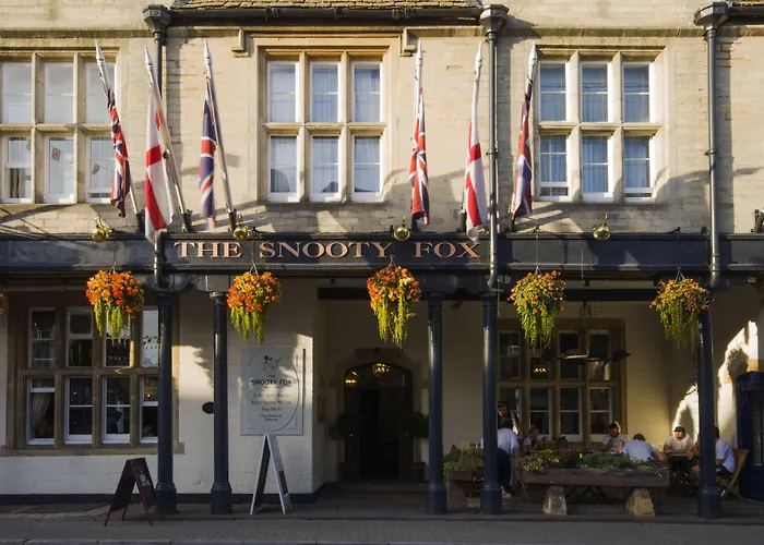The Snooty Fox, an 8.4-rated, 3-star Tetbury hotel, features a historic charm with modern amenities. Guests can enjoy a cozy bar, full English breakfast, and easy access to local attractions. The hotel welcomes dogs for a fee, ensuring a pet-friendly environment.