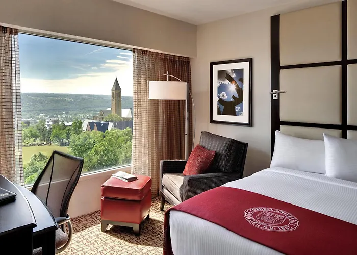 The Statler Hotel At Cornell University offers a distinctive blend of luxury and education with a AAA Four Diamond rating and a Booking.com score of 8.9. This 4-star Ithaca hotel features three on-site restaurants, a fitness center, and 16000 square feet of event space. Guests can also enjoy complimentary Wi-Fi and a local airport shuttle.