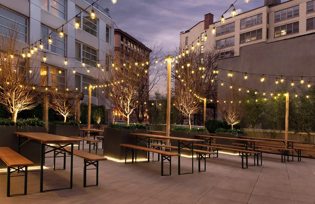 The Tillary Hotel Brooklyn offers a chic and stylish haven at the foot of the Manhattan Bridge, featuring a rooftop garden bar and an on-site café restaurant. This 4-star New York hotel is ideal for those looking to explore Brooklyn's vibrant neighborhoods and cultural landmarks.