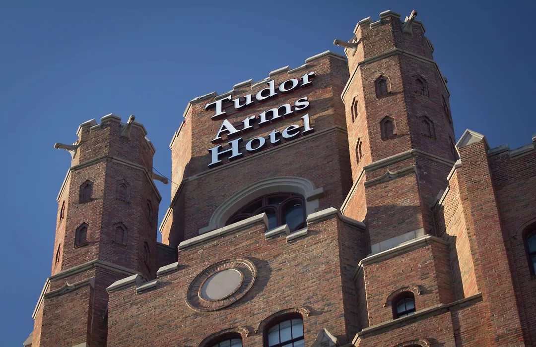 Business facilities at The Tudor Arms include a business center and meeting rooms designed for events, accommodating up to 250 guests in the Crystal Ballroom. The hotel also offers services like wedding planning and creative catering.
