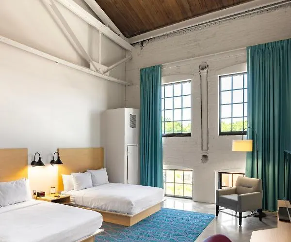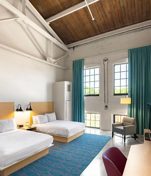The Warehouse Hotel At Champion Mill, a 3-star Hamilton hotel rated 8.2/10 on Booking.com, is part of the largest indoor sports center in the United States. It features 233 rooms with modern amenities and is set in a historic paper mill adjacent to the Great Miami River.