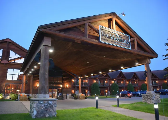 The Waters Of Minocqua, a 4-star resort rated 8.4/10 on Booking.com, features an expansive indoor-outdoor waterpark, pet-friendly accommodations, and a full-service pub. This family-friendly resort offers various amenities, including an arcade, restaurant, and complimentary breakfast.