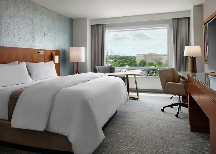 Westin Austin at The Domain features a 4-star rating and provides a modern setting for both business and leisure travelers, along with amenities like an outdoor pool and 24/7 fitness center. Located within The Domain's upscale shopping mall, it offers easy access to numerous dining and entertainment options.
