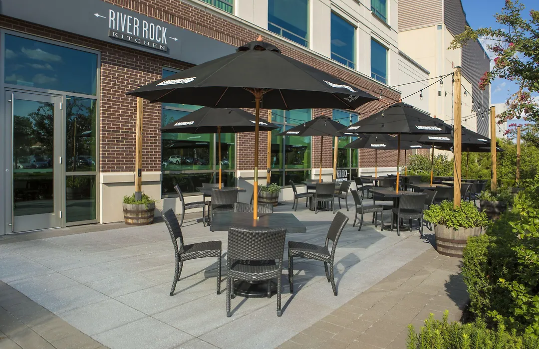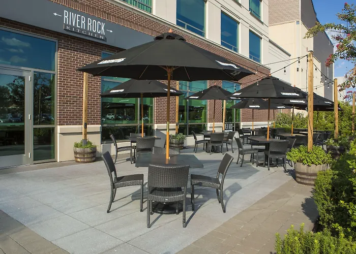 Dining options include River Rock Kitchen, offering flavorful American fare and an Eat Well Menu for health-conscious diners. Guests can unwind at the River Rock Lounge, where a curated selection of beers and craft bourbons is available.