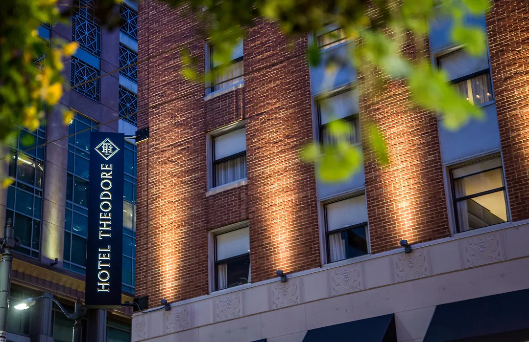 Hotel Theodore, a 4-star boutique property in downtown Seattle, highlights local craftsmanship and creativity with an art collection curated by the Museum of History and Industry. Amenities include a fitness center, complimentary Wi-Fi, and pet-friendly facilities.