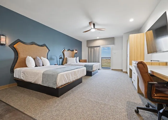 Recreational amenities at the hotel include a seasonal outdoor pool, open from March 1. Nearby attractions include Moabi Regional Park and Pirate Cove Resort, both approximately 1.5 miles away.
