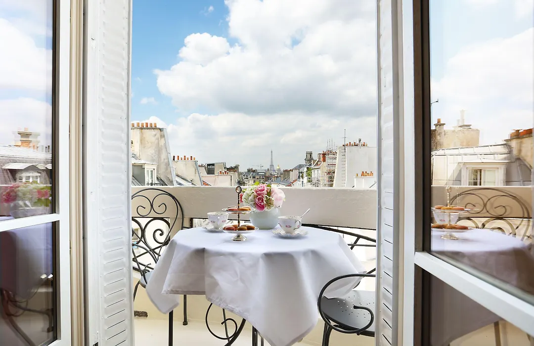Hotel Trianon Rive Gauche provides a buffet breakfast in the lounge, featuring hot and cold options. Afternoon offerings include a wine and snack menu featuring selections from the Dammann Frères house, complementing a relaxing environment for guests.