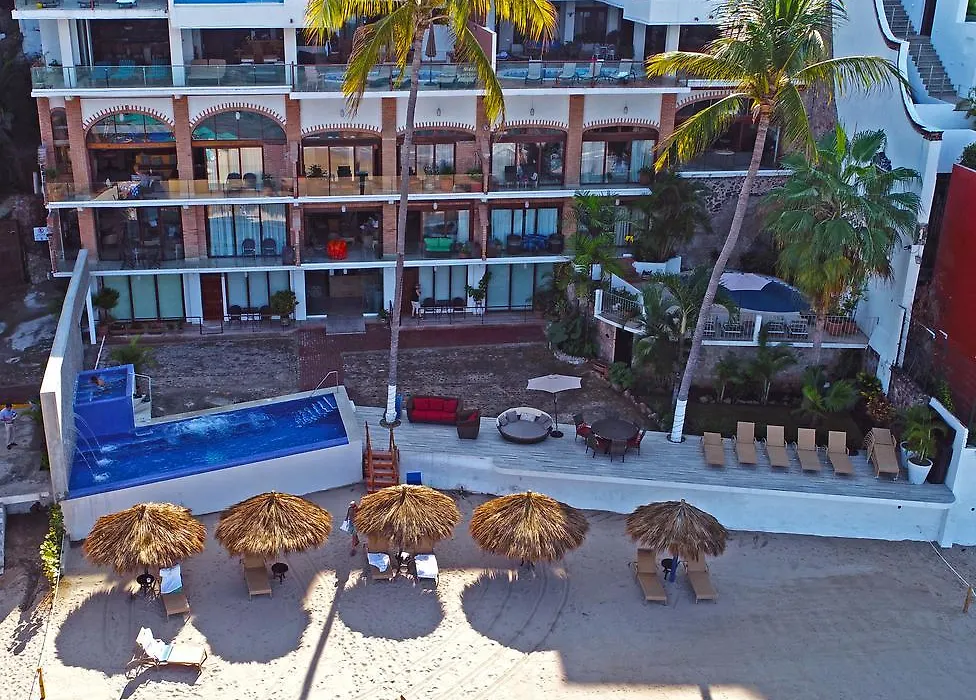 Vallarta Shores Beach Hotel, a 4-star beachfront property, features multiple luxury suites and villas, modern amenities, and a heated saltwater infinity pool. The establishment is recognized for its stunning ocean views and open-air living concepts, catering specifically to families and groups seeking relaxation and adventure.