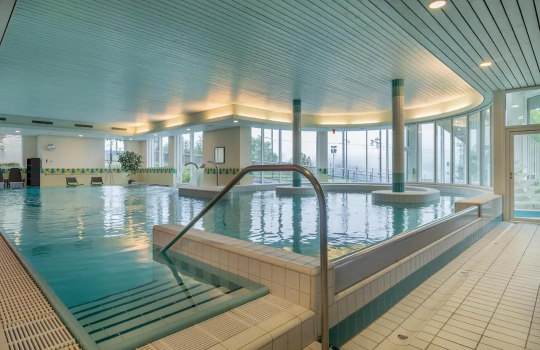 The wellness area at Hotel Victoria Lauberhorn Wengen spans 10764 ft² and includes an indoor salt-water pool, outdoor whirlpool, sauna, and fitness room. Various massages and treatments are available to guests looking to relax after outdoor activities like skiing, hiking, and mountain biking.