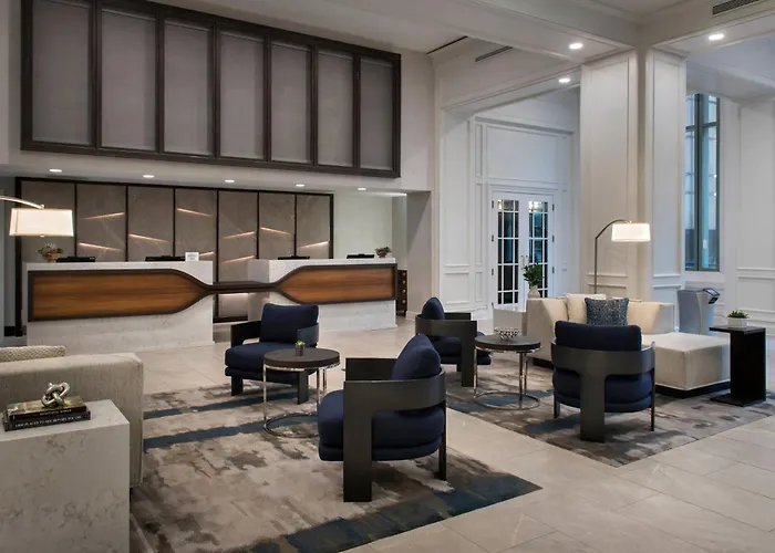 Norfolk Waterside Marriott is a 3-star hotel rated 8.0/10 on Booking.com, conveniently connected to Waterside Convention Center and moments away from the USS Wisconsin. The hotel features an indoor pool, a state-of-the-art gym, and various dining options including a restaurant serving American-style breakfast.