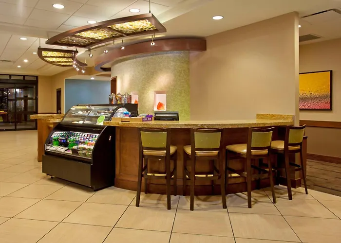 Dining options include The Bar, which serves thoughtfully sourced, regionally inspired food and premium beverages. The Market offers grab-and-go items, while guests can enjoy a complimentary buffet breakfast daily from 6:30 AM to 9:00 AM.