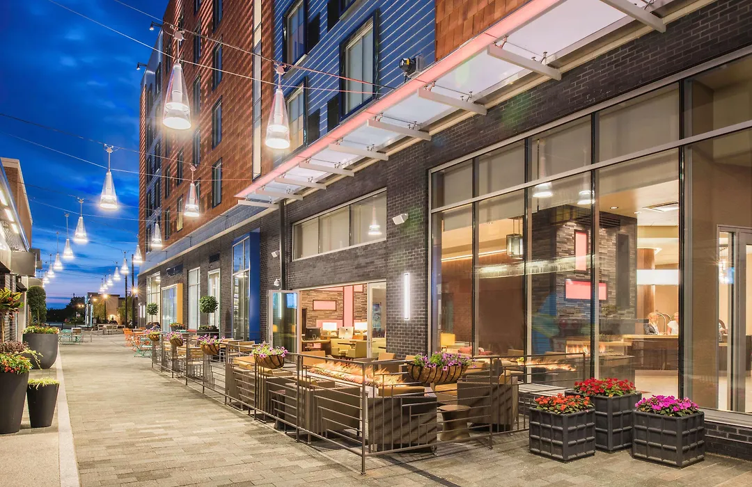 Dining is available onsite at the 24/7 Gallery Menu serving American cuisine, along with a garden area for leisure dining. Nearby, multiple dining options are within a short walking distance, including Hyde Park Prime Steakhouse and Bonefish Grill.