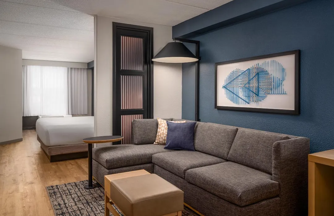Rooms at Hyatt Place Columbia/Harbison include a spacious guestroom with a 42-inch high-definition flat panel TV, signature Hyatt Grand Bed, and a plush Cozy Corner oversized sofa sleeper. Some rooms feature a seating area and partially open bathrooms with designer toiletries.