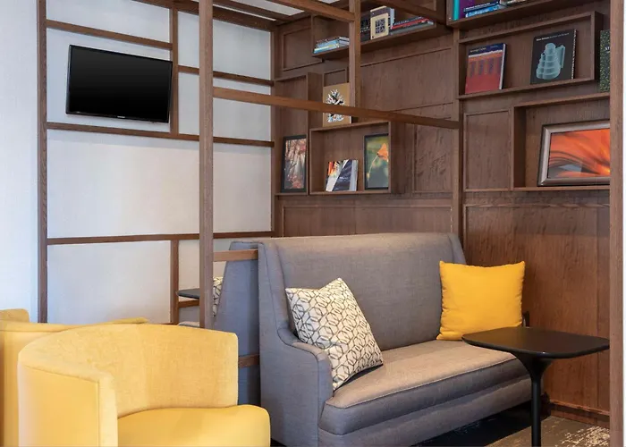Dining options at the hotel include a bar for drinks and a complimentary breakfast on weekdays featuring premium ingredients. The dining scene in the vibrant city center offers various culinary options within walking distance, such as Pinky's Rooftop and Detroit Taco Company, both 0.5 miles away.