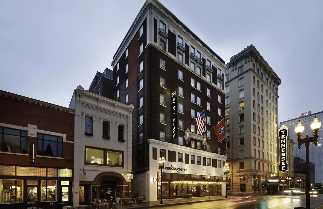 Hyatt Place Knoxville/Downtown features 165 air-conditioned rooms with modern amenities including a flat-screen TV, coffee machine, and private bathroom. This 3-star Knoxville hotel offers an on-site restaurant, fitness center, bar, and shared lounge, making it suitable for leisure and business travelers.