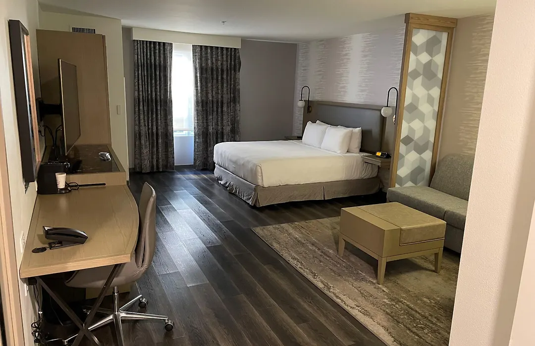 All 88 rooms at Hyatt Place Santa Barbara include premium bedding and designer toiletries. Each room is equipped with a flat-screen TV, air conditioning, and a laptop-compatible safe, creating a comfortable environment for guests.