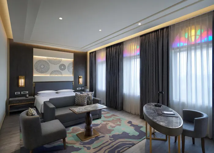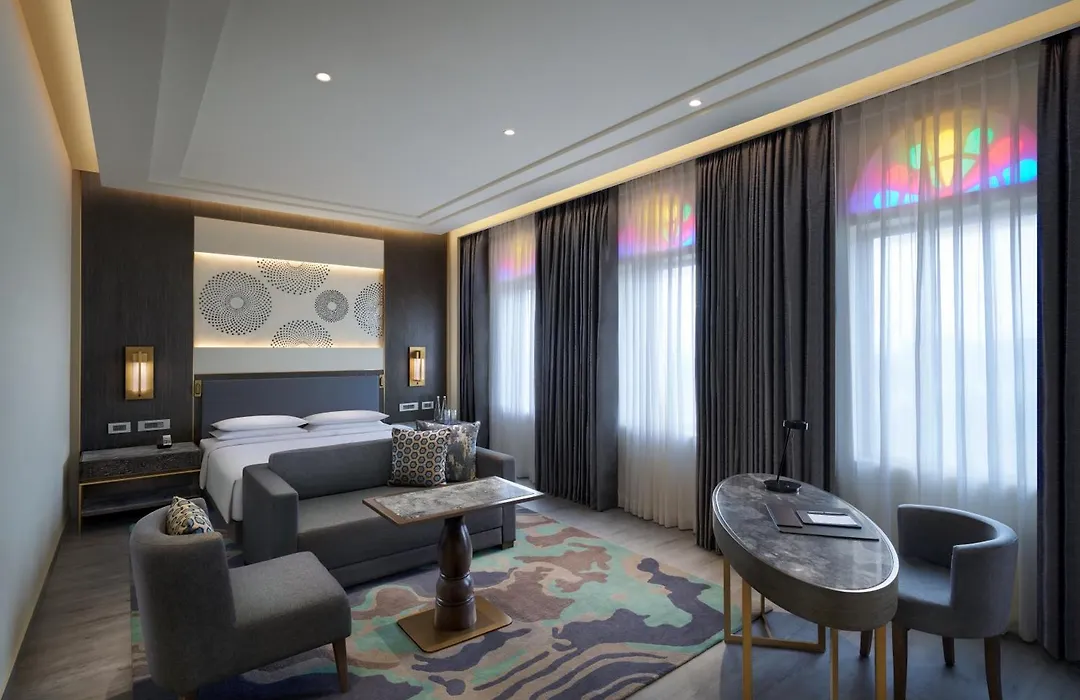 Leisure facilities at Hyatt Regency Jaipur Mansarovar include an outdoor swimming pool and a fitness center. The hotel also offers a paid airport shuttle service, ensuring convenient transportation for guests.
