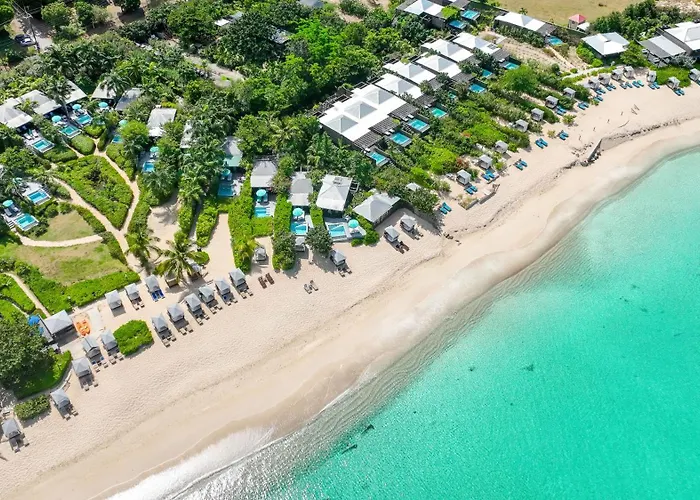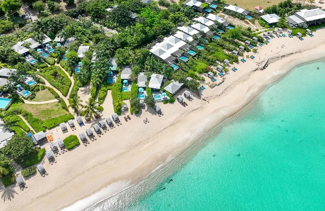 Keyonna Beach, a 4-star boutique hotel rated 9.0/10 on Booking.com, offers a secluded beachfront experience specifically designed for couples. Amenities include private plunge pools, outdoor showers, and a restaurant serving locally sourced Caribbean cuisine, ensuring an intimate setting free from distractions.